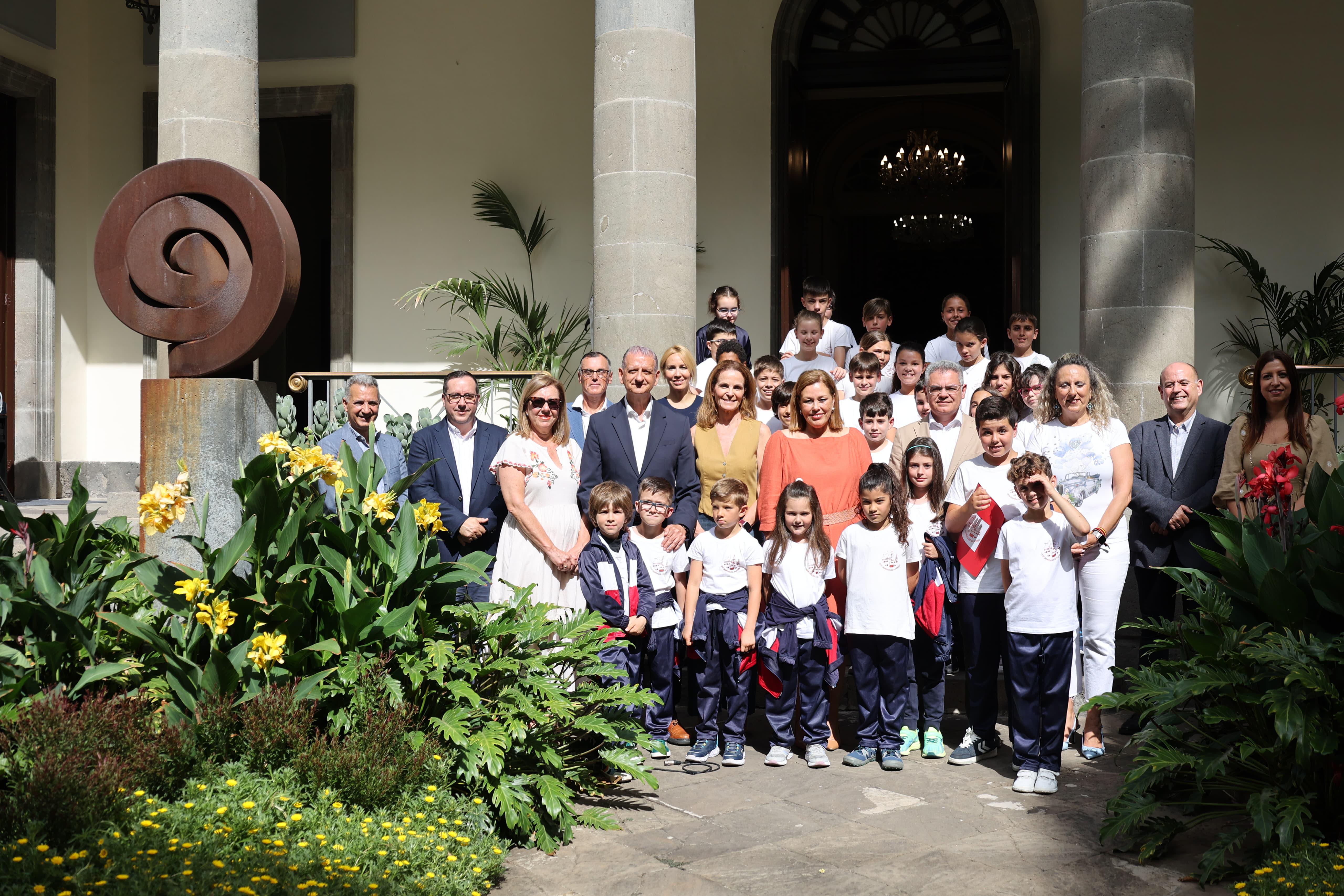 La presidenta del Parlamento de Canarias, Astrid Pérez, recibió este miércoles en la sede de la Cámara al alumnado del CEIP Domínguez Alfonso de La Orotava, Tenerife, que dió lectura de un “Manifiesto canario contra el Acoso Escolar”. Astrid Pérez destacó que la eliminación del acoso escolar en las aulas “es un compromiso colectivo, una declaración de principios que nos une en la defensa de los derechos de nuestros niños y jóvenes… porque el acoso escolar no es sólo un problema de quienes lo sufren, es un problema que nos atañe como sociedad”, aseguró. El centro educativo, primero en Canarias en proclamarse “Colegio Libre de Acoso Escolar”, pretende trasladar la iniciativa a todos los colegios e institutos de Canarias, y ha querido comenzar desde el Parlamento, “donde reside la voluntad de la ciudadanía de las ocho islas”, indicó la directora del centro. El Manifiesto, leído por el alumnado, destacó un objetivo, el de “promover la convivencia pacífica en las aulas, el respeto a la diversidad, la protección de los derechos y deberes del alumnado”. En el acto estuvo presente el viceconsejero de Educación del Gobierno de Canarias, José Manuel Cabrera, así como algunos diputados y diputadas de la Cámara.