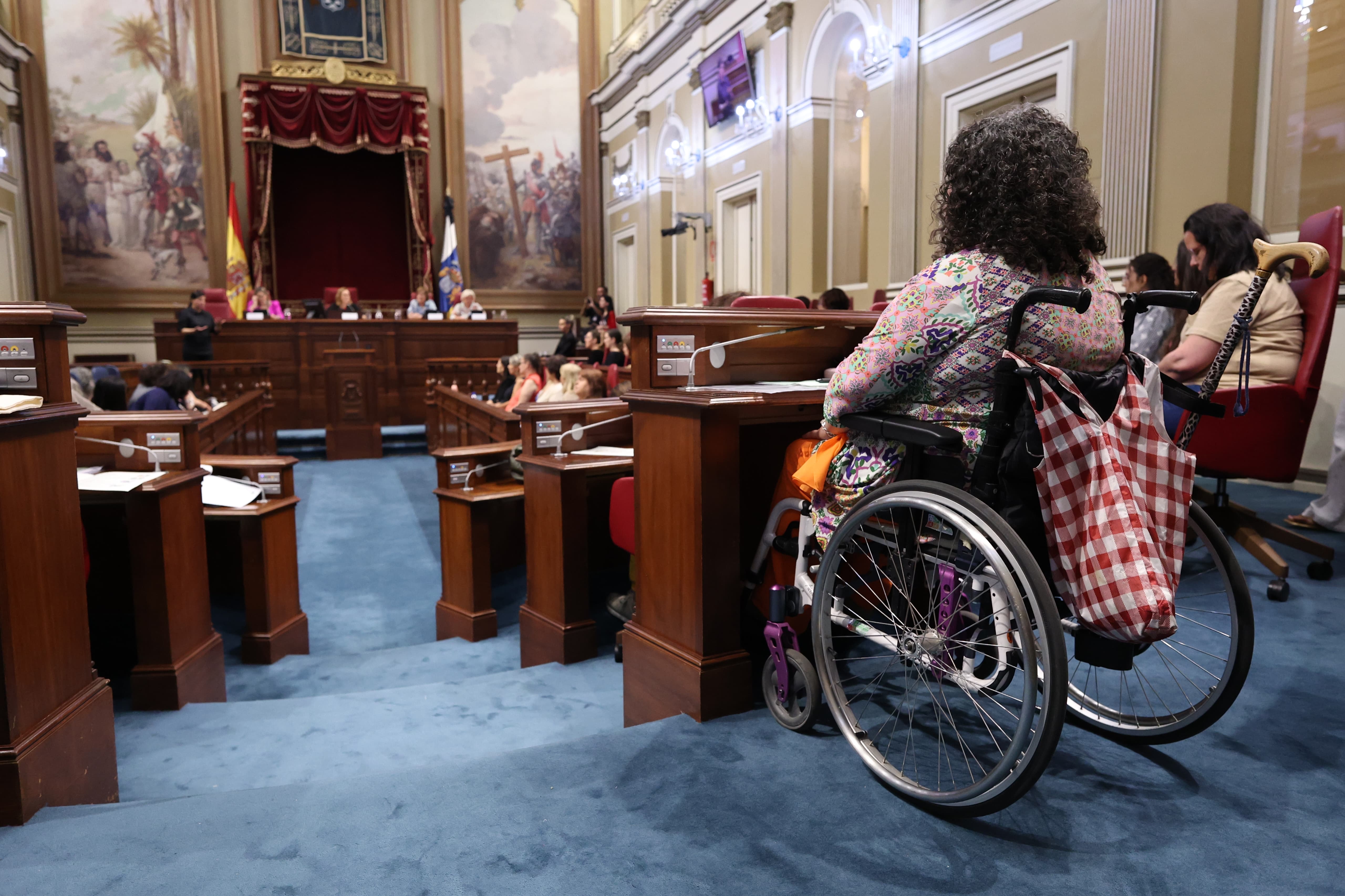 El Parlamento de Canarias acogió este miércoles un pleno en el que 70 mujeres con discapacidad de todas las islas se convirtieron en diputadas por un día para exponer su realidad y promover la inclusión y la defensa de sus derechos. La sesión ha estado presidida por la presidenta del Parlamento de Canarias, Astrid Pérez, que ha destacado el trabajo de estas mujeres en la defensa activa de la igualdad y la no discriminación, “este hemiciclo da voz a las mujeres que luchan contra las barreras impuestas por nuestra sociedad, ustedes son un ejemplo de fortaleza y determinación, hoy quiero decirles que en este camino no están solas”. Astrid Pérez, ha recordado en su discurso la labor realizada en el Parlamento por la igualdad y la inclusión, aludiendo al sistema de subtítulos e intérpretes puesto en marcha en marzo de 2024 y que ha permitido que las cerca de 55.000 personas con problemas de audición en las islas puedan seguir la actividad parlamentaria. En el hemiciclo 8 mujeres con discapacidad de cada una de las islas pudieron subir a la tribuna a expresar sus preocupaciones y demandas para que sean escuchadas por los gobernantes y por la población en general. Estefanía Amoedo de Fuerteventura expresó en el hemiciclo las dificultades para encontrar un empleo con una discapacidad, “se debe exigir la cuota del 2% de cuota en empresas de más de 50 trabajadores”, indicó, Magdalena Rodríguez de Lanzarote afirmó que “a las empresas les da miedo contratar a personas con discapacidad”. Durante la sesión se presentó el primer Manifiesto Canario de Mujeres con Discapacidad que fue aprobado por unanimidad. En el documento se recogen algunas peticiones que van desde la igualdad en el trabajo en el campo, la conciliación familiar y más protección frente a la violencia de género. En la sesión estuvieron presentes Dulce María Gutiérrez González, Directora de Discapacidad del Gobierno de Canarias, Ana Brito Brito, Directora del Instituto Canario de Igualdad de Gobierno de Canarias y Carmen Laucirica Gabriel, Presidenta del CERMI Canarias. El acto fue organizado por el Comité Español de Representantes de Personas con Discapacidad en las Islas (CERMI Canarias), integrado por un gran número de asociaciones y entidades del ámbito de la discapacidad, con la colaboración del Parlamento de Canarias, la Dirección General de Discapacidad del Gobierno de Canarias y el Instituto Canario de Igualdad.