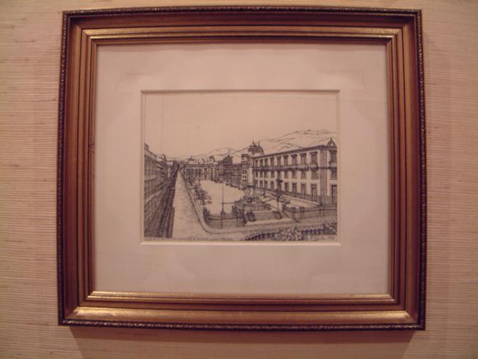 José B. González Falcón. Dibujo a plumilla sobre papel especial 'Carson' representando a la actual Plaza de la Candelaria, de 0.45x0.35. Ubicado en Sala de Diputados.