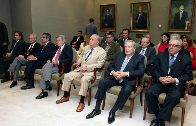 foto 1289 - Todos los presidentes del Gobierno de Canarias durante la lectura de la Declaración Institucional en el Pleno.