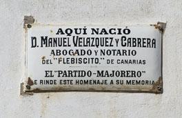 Placa de la casa donde nació Manuel Velázquez Cabrera.