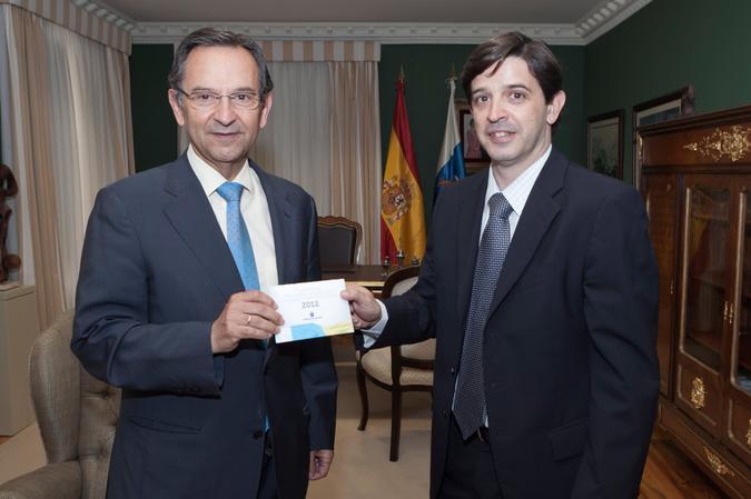foto 2013 - Antonio Castro recibe el Proyecto de Ley de Presupuestos de manos del consejero de Economía, Hacienda y Seguridad del Gobierno de Canarias, Javier González Ortiz.