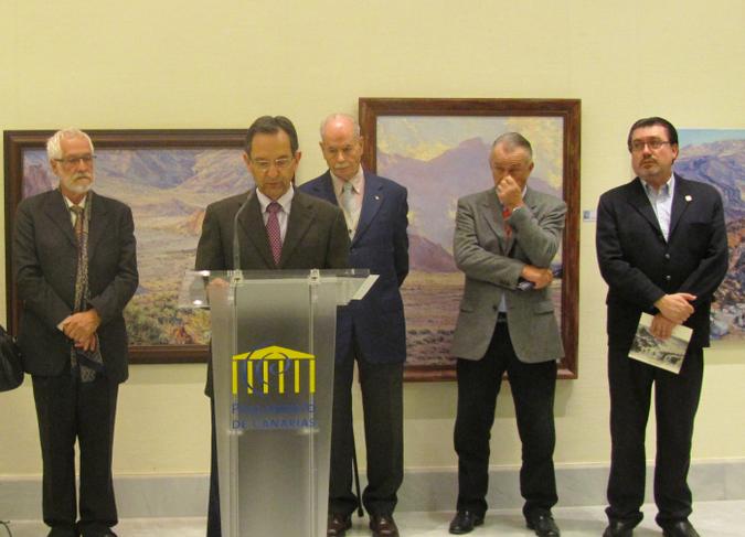 El presidente del Parlamento, Antonio Castro, inaugura la exposición de Juan Mazuelas.