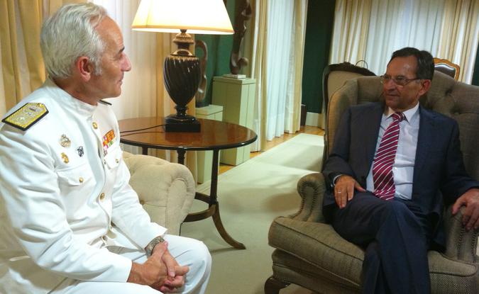 Antonio Castro y el comandante del Mando Naval de Canarias, Gregorio Bueno.