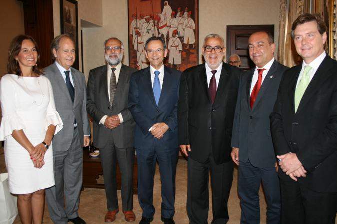 La delegación parlamentaria con el presidente del gobierno marroquí, Abdelilá Benkirane.