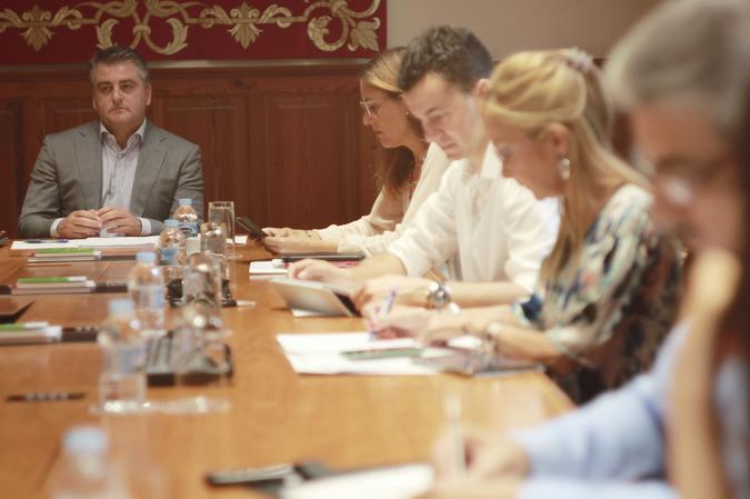 Los miembros de la Junta de Portavoces, durante la reunión.