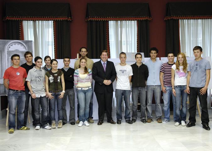El presidente y los estudiantes se fotografiaron ante los trabajos