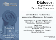 La presidenta del Parlamento presenta una nueva edición de los ‘Diálogos’, que acogió en esta ocasión un debate entre Sami Naïr y Javier de Lucas sobre migraciones y derechos humanos.