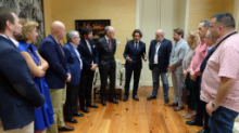 El presidente del Parlamento de Canarias, Gustavo Matos, mantuvo un breve encuentro con representantes del sector turístico que asistieron como público al pleno monográfico sobre la quiebra de Thomas Cook celebrado en la Cámara