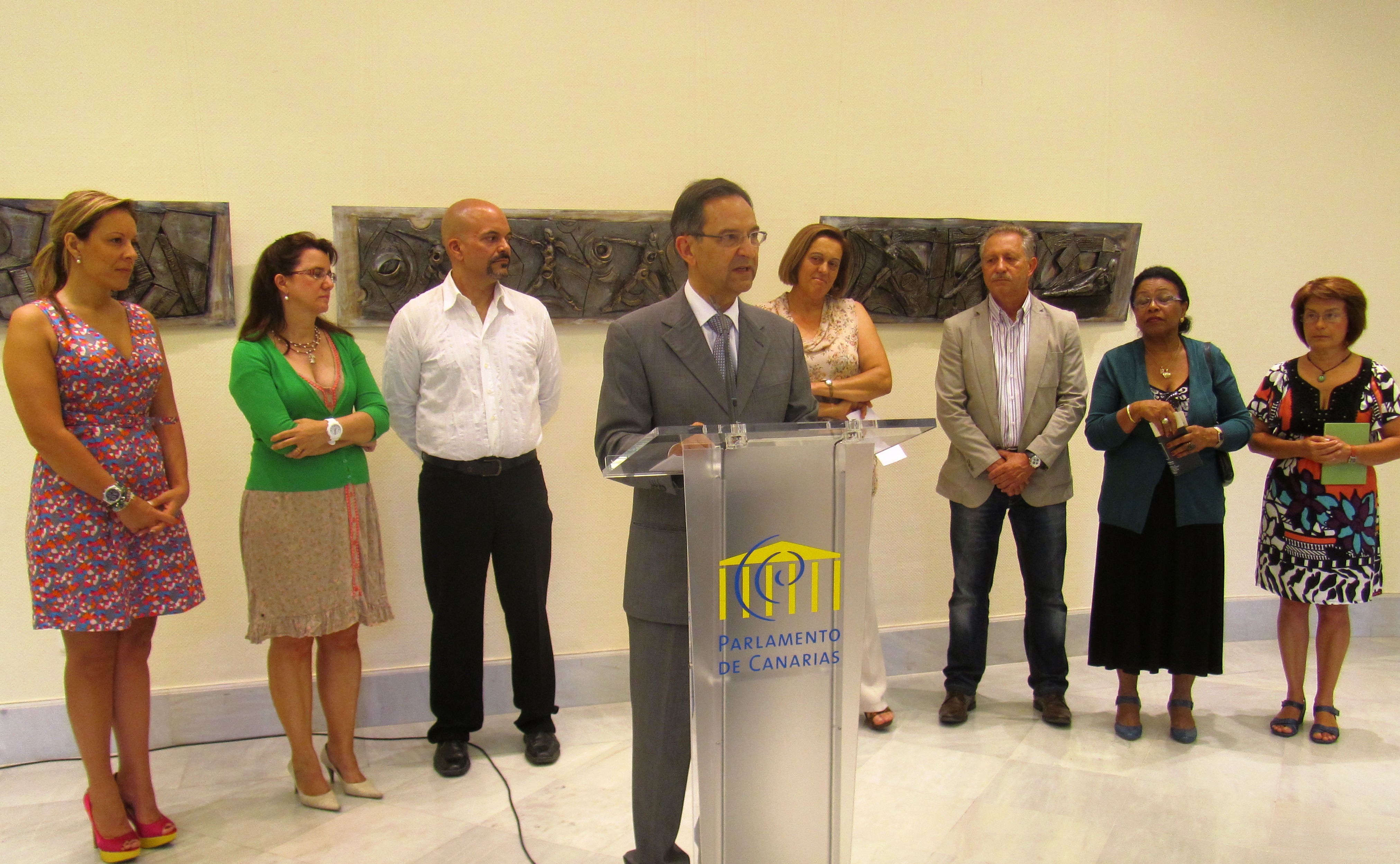 El presidente del Parlamento de Canarias, Antonio Castro, inauguró la exposición "Anatomía y Símbolos" del escultor José Ernesto Acosta Lorenzo. La muestra, que ha sido organizada con la colaboración de la Asociación de cuidadoras/es, familiares y amigos/as con dependencia, Alzheimer y otras demencias (Acufade), permanecerá abierta hasta el 27 de junio en la sala del Estatuto de Autonomía de la Cámara legislativa.