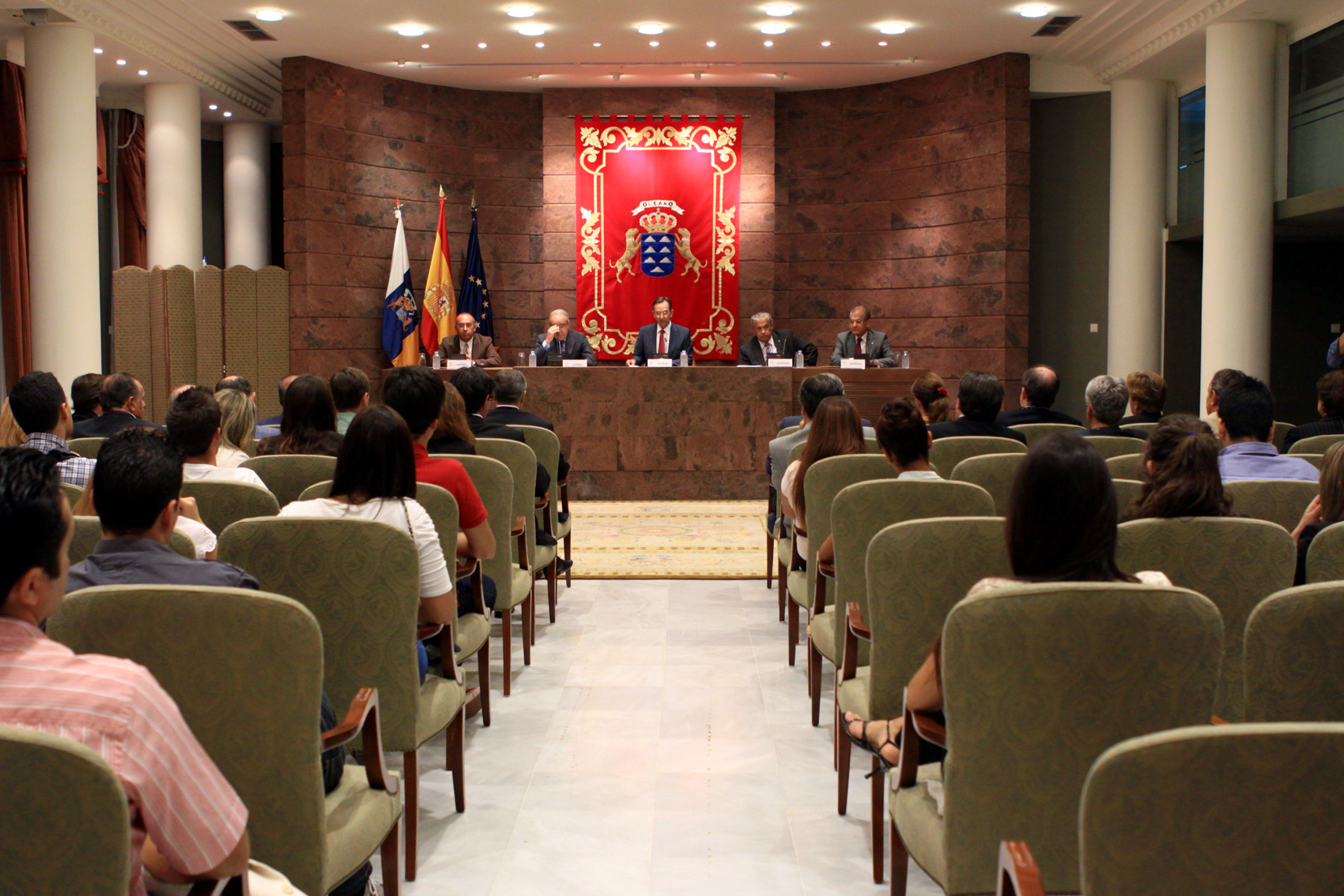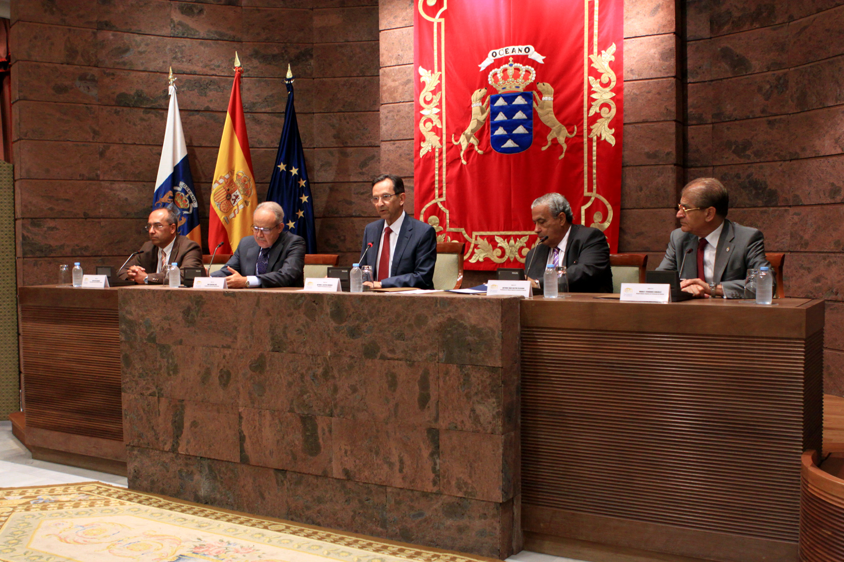 El salón de actos del Parlamento de Canarias acogió la conferencia del presidente de la Sala II del Tribunal Supremo, Juan Saavedra, titulada “La Constitución de 1812 como punto de partida del Tribunal Supremo”. Acompañaron al conferenciante el presidente del Parlamento, Antonio Castro, y los dos vicepresidentes de la Mesa, Julio Cruz y Manuel Fernández.