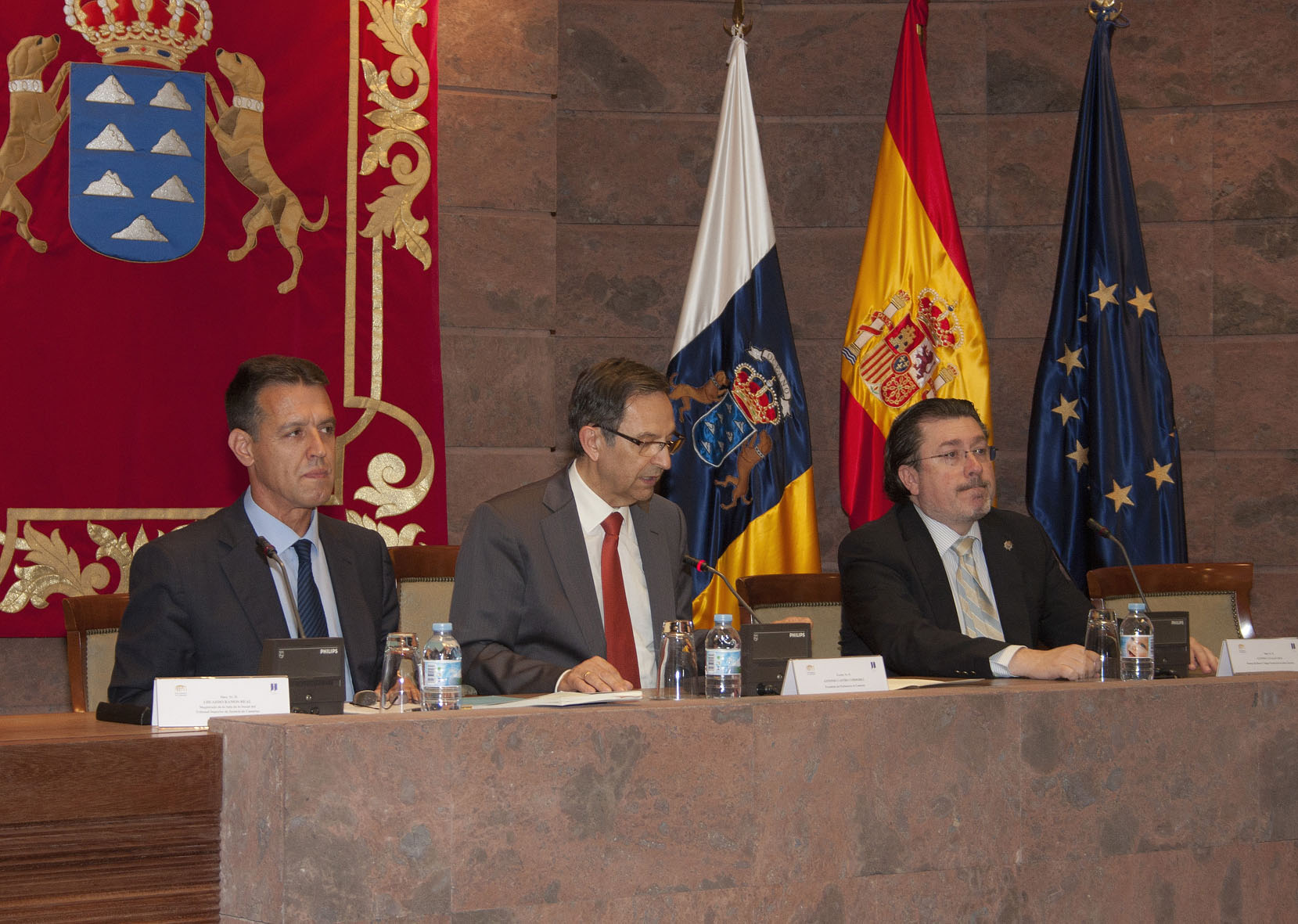 Intervinieron en este acto el presidente del Parlamento, Antonio Castro, y el Decano del Ilustre Colegio Notarial de las Islas Canarias, Alfonso Cavallé, quien presentó al conferenciante.