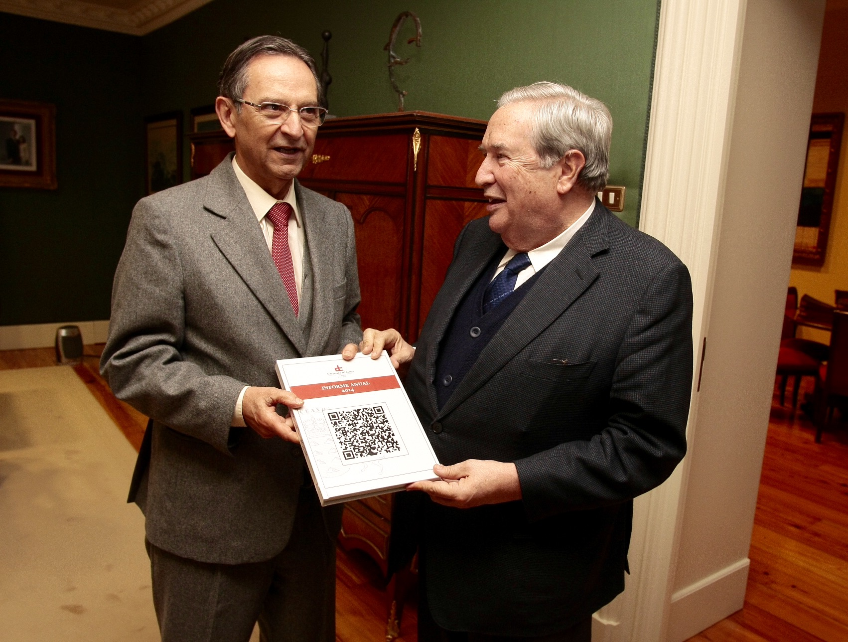 El presidente del Parlamento, Antonio Castro, recibió de manos del Diputado del Común, Jerónimo Saavedra, el Informe Anual de esta institución correspondiente al año 2014, una memoria que ahora deberá presentar en la Comisión de Gobernación, Justicia y Desarrollo Autonómico y posteriormente en el Pleno de la Cámara.