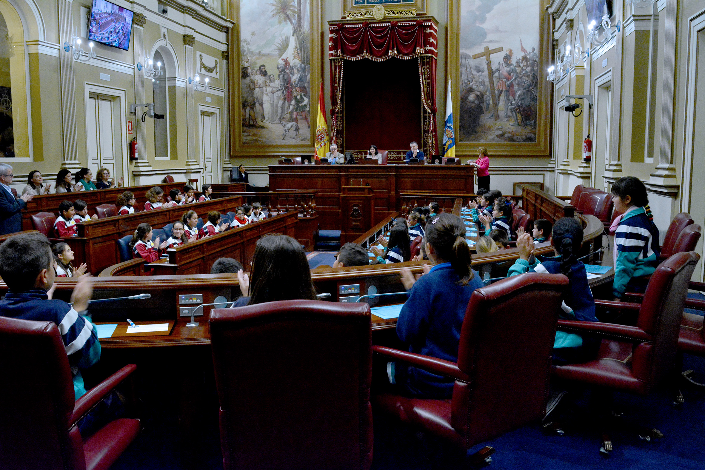 En representación de la provincia de Las Palmas participó el colegio San Fernando Guanarteme de Gáldar, con dos portavoces. El primero, David García Rodas, nos explicó brevemente el significado de las palabras audacia y prudencia y añadió que "lo importante es poner en práctica estos valores para no equivocarnos y que nuestras decisiones sean lo más acertadas posible y no sólo pensando en uno mismo sino también en los demás". Por su parte, Andrea Maroto González nos relató lo difícil que es tomar decisiones, pero que "hay que ser prudentes al hacerlo para no dañar a otras personas, o a nosotros mismos, y ser audaces para tomar decisiones que a lo mejor nos van a traer problemas". Por la provincia de Santa Cruz de Tenerife acudió el colegio Las Mantecas de La Cuesta, también con dos portavoces: Kiria Yeray Pérez Sánchez, que desde la tribuna defendieron que hay que ser buenas personas e hicieron las siguientes recomendaciones: "Sé amable, sé respetuoso, no busques pelea, no insultes y no le faltes el respeto a las personas mayores".