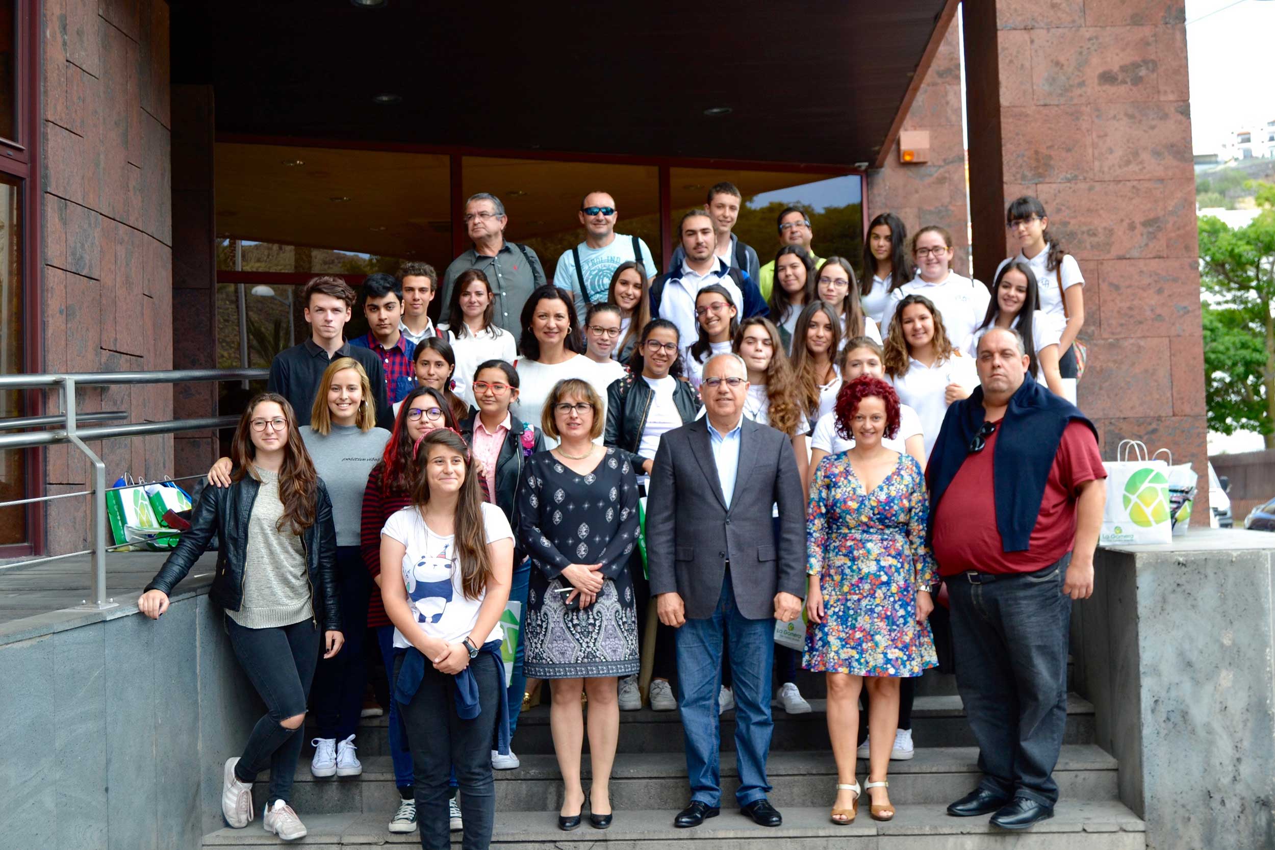 El presidente del Cabildo, Carlos Alonso, y el director territorial de Educación de Santa Cruz de Tenerife, Ángel Recuenco, recibieron a los participantes, en un acto al que también asistieron los diputados José Manuel Pitti y Cristina Tavío, el director insular de Educación y Cultura del Cabildo, José Luis Rivero, así como el vicepresidente insular Aurelio Abreu, y los consejeros Sebastián Ledesma y Julio Concepción.
