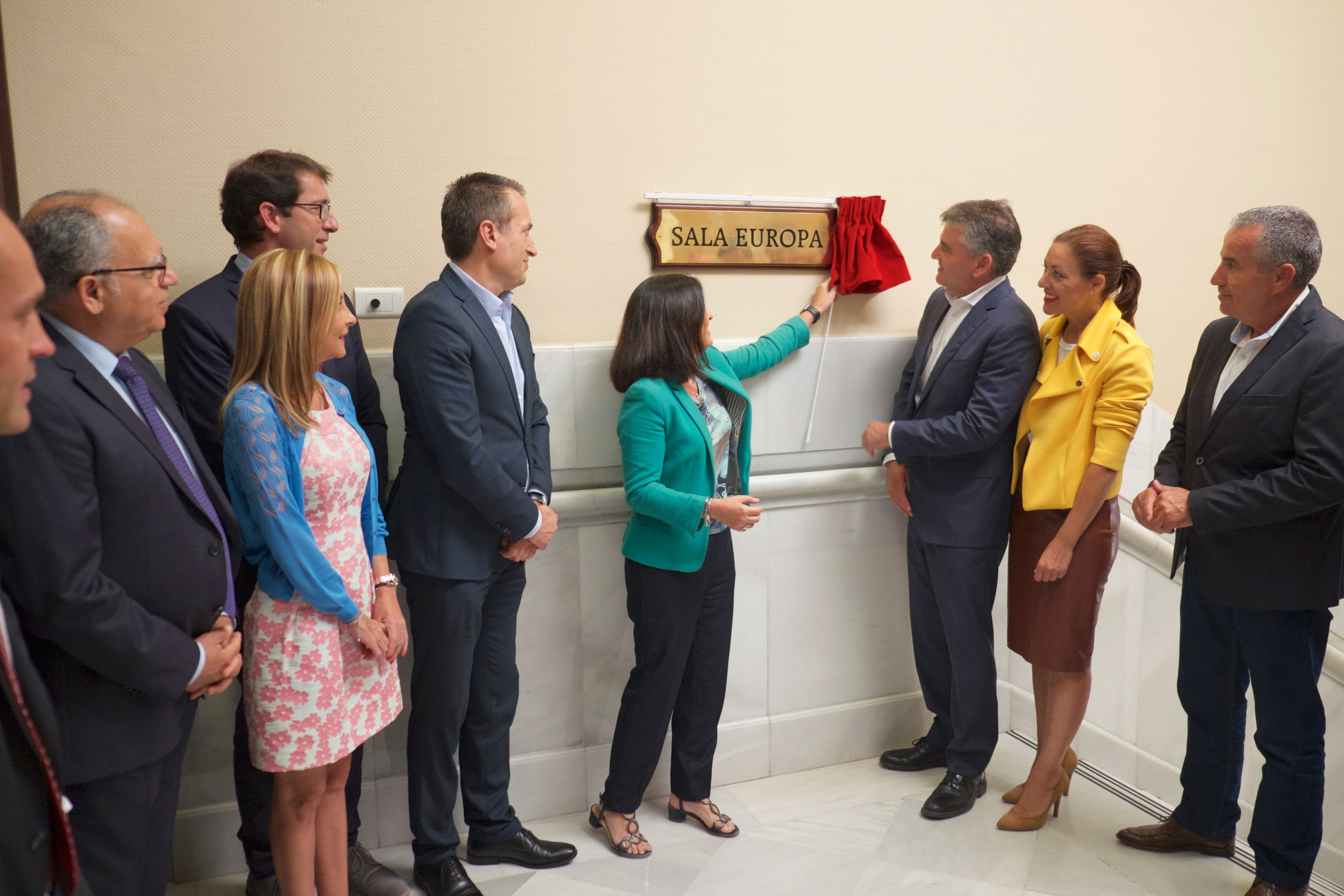 La presidenta explicó que la Junta de Portavoces y la Mesa de la Cámara han impulsado la decisión de rotular con el nombre del ‘viejo continente’ el salón de actos de la cámara, estancia “que acoge desde hace varios años importantes convocatorias y testimonios que serán recordados con satisfacción”.