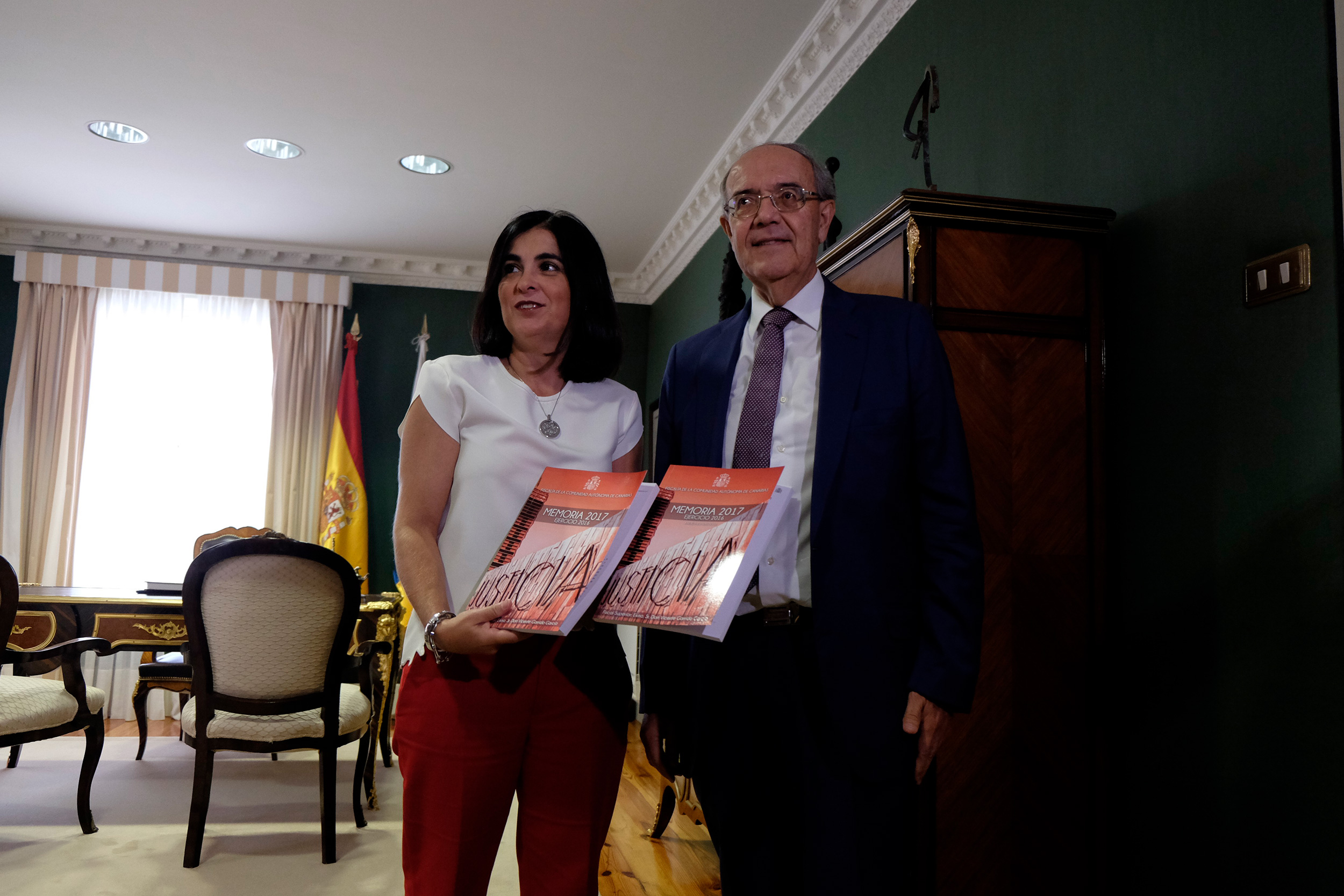 La presidenta del Parlamento de Canarias, Carolina Darias, recibió este miércoles la memoria 2016 de la Fiscalía General de la Comunidad Autónoma de Canarias. El fiscal superior, Vicente Garrido, hizo entrega en la sede de la Presidencia del Parlamento de este balance anual, un documento que, según explicó, "refleja el esfuerzo que realizado por parte de la Fiscalía a lo largo del ejercicio pasado".