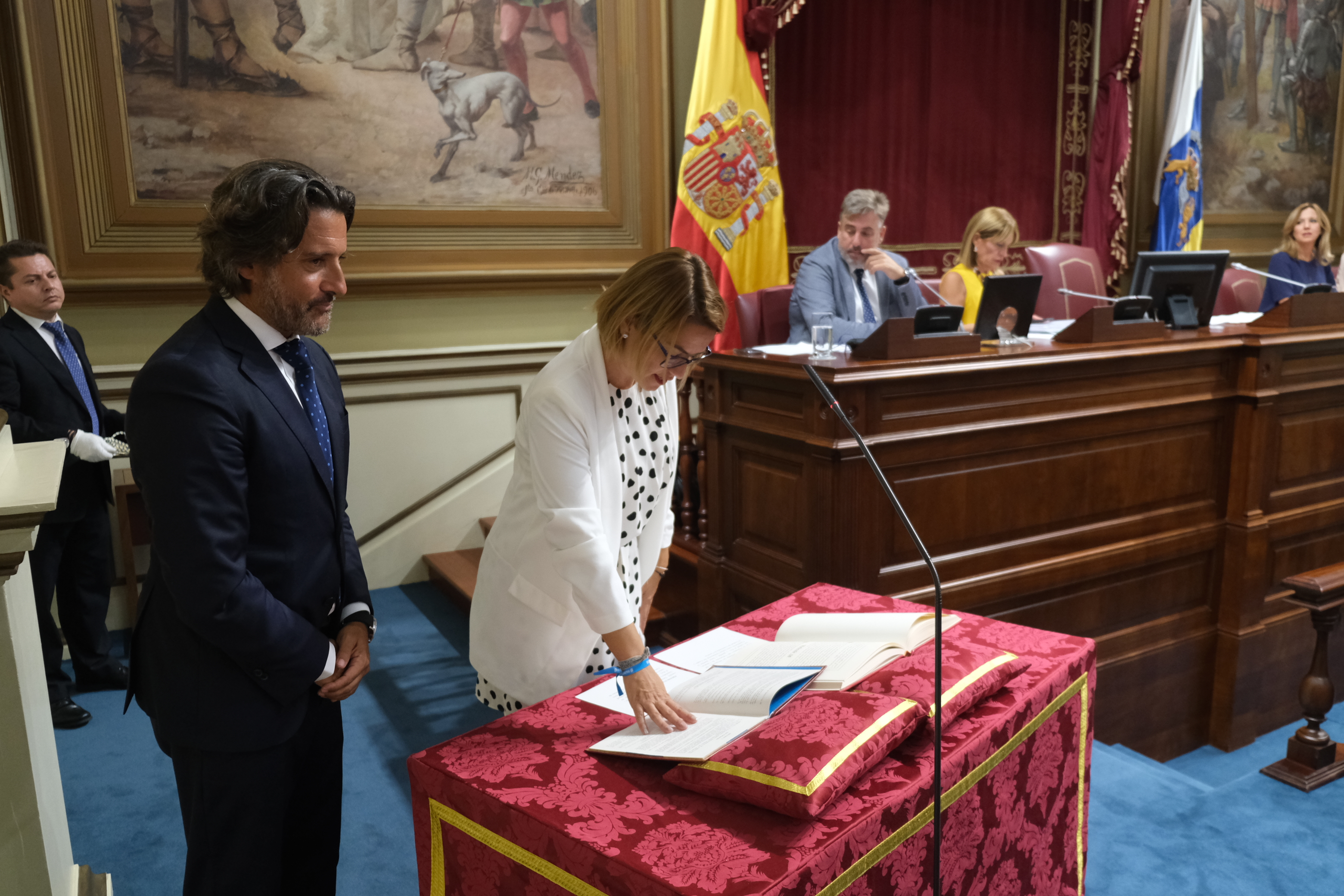 Canarias, 10 de septiembre de 2019.- Judit Natalia Bayarri Martín y Jacob Anis Qadri Hijazo han tomado posesión de sus actas como diputados en el inicio del primer pleno de esta X Legislatura. La primera, que entra a formar parte del Grupo Parlamentario Nacionalista por la lista regional en sustitución del senador autonómico Fernando Clavijo, ha ratificado su toma de posesión celebrada en agosto pasado ante el presidente de la Cámara, Gustavo Matos. El segundo sustituye al senador autonómico Asier Antona y entra al Grupo Parlamentario Popular por la circunscripción de La Palma.