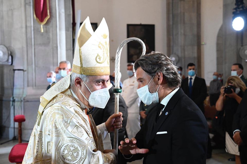 Canarias, 15 de agosto de 2020.- El presidente del Parlamento de Canarias, Gustavo Matos, ha asistido este sábado, 15 de agosto, a la misa solemne en la Basílica de Nuestra Señora de la Candelaria, en la Villa Mariana, a cargo del obispo de la Diócesis de Tenerife. Un acto que contó con la presencia de una reducida representación de autoridades militares y civiles. “Este año, los festejos en honor a Nuestra Señora de la Candelaria se han adaptada a las circunstancias que estamos viviendo en el mundo con la pandemia de COVID, con una misa sencilla y emotiva misa. Las autoridades seguimos apelando a la responsabilidad de la población”, ha señalado Matos.