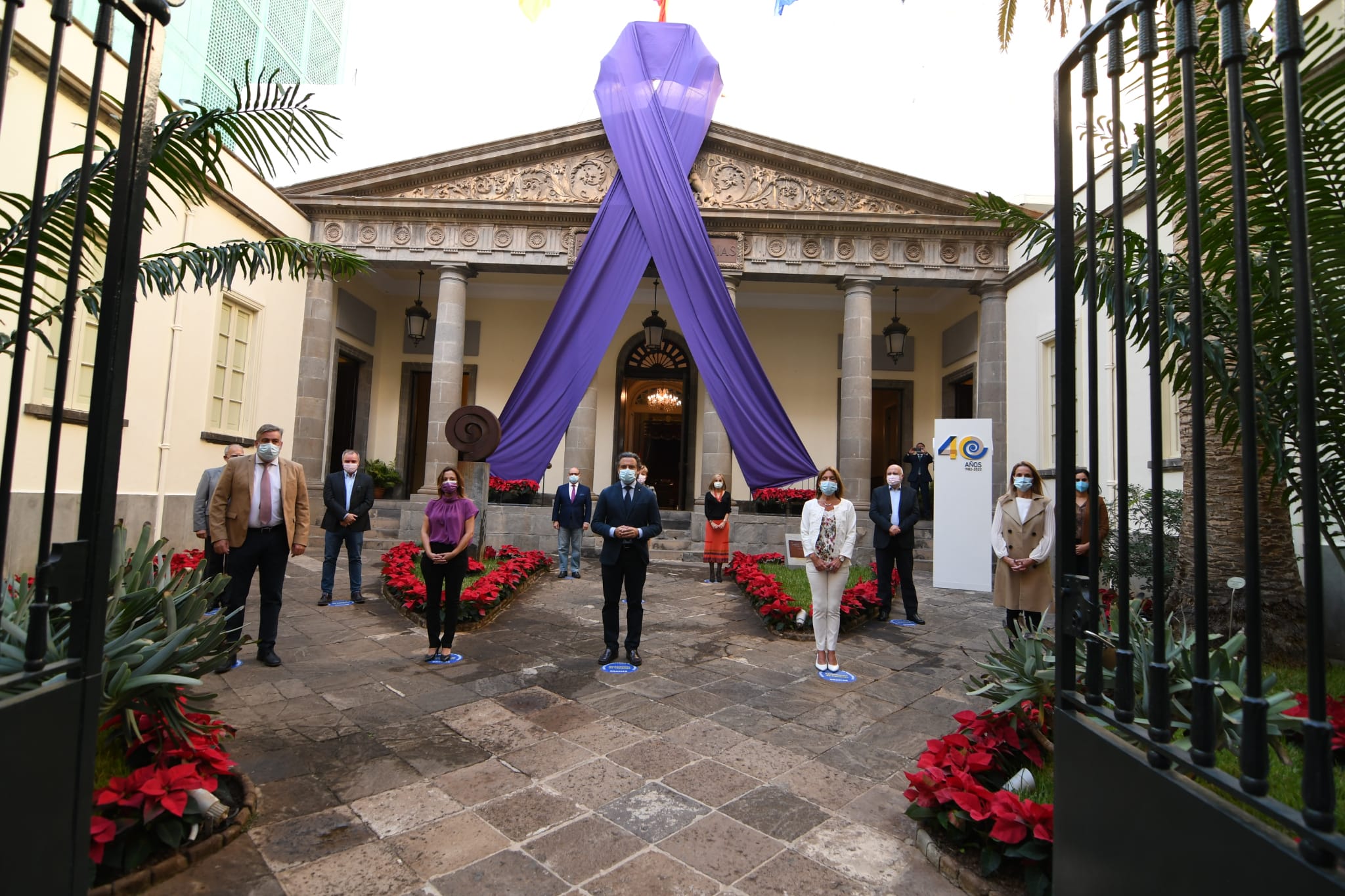 Minutos antes de comenzar el pleno, los miembros de la Mesa y Junta de Portavoces han visualizado, junto al lazo morado que durante toda esta semana luce la fachada principal de la sede legislativa y en representación de toda la Cámara, el compromiso de la institución con la lucha contra la violencia hacia las mujeres.