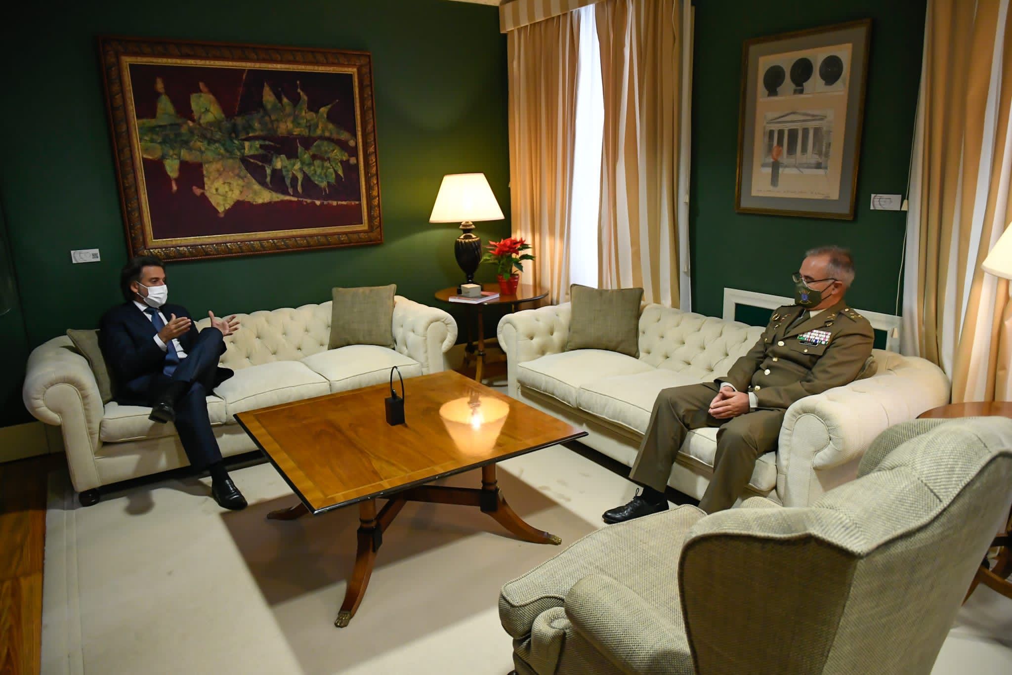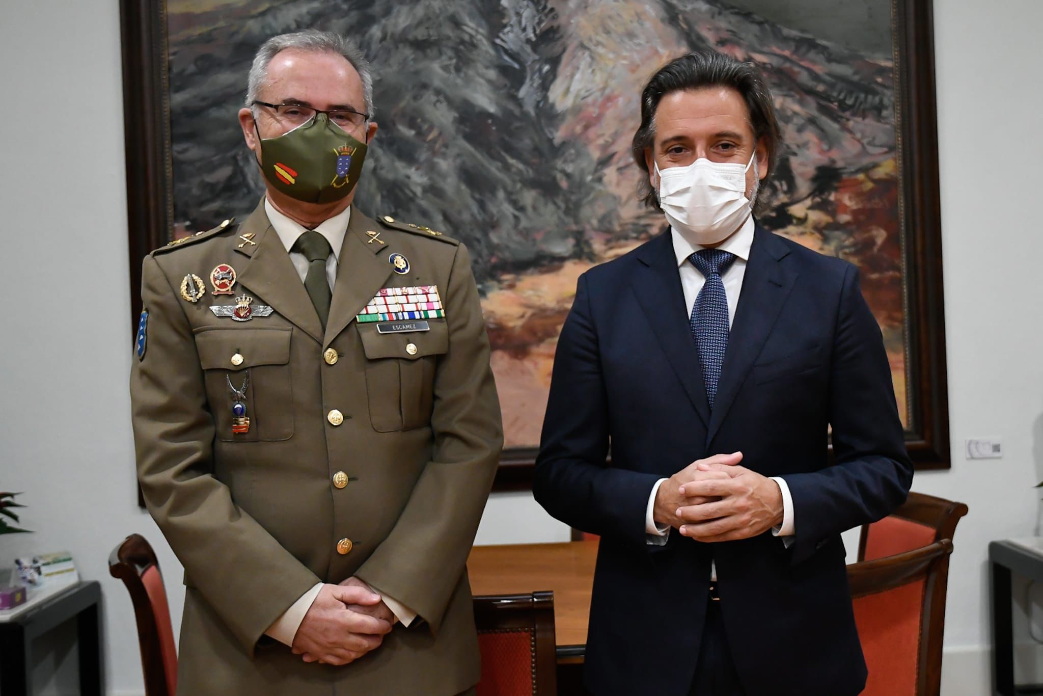 Canarias, 1 de diciembre de 2021.- El presidente del Parlamento de Canarias, Gustavo Matos, recibió este miércoles al general Alejandro Escámez, jefe del Mando de Canarias tras su nombramiento el pasado 19 de octubre. Durante el encuentro, Escámez le trasladó al presidente sus prioridades al frente de esta nueva responsabilidad, entre las que destacó las labores a desarrollar por el Ejército en La Palma como consecuencia de la erupción volcánica y la colaboración con las instituciones en sus distintos niveles. Por su parte, Matos le expresó la voluntad del Parlamento de Canarias de continuar cooperando con las Fuerzas Armadas en todo cuanto repercuta de manera positiva en la sociedad y valoró una vocación de servicio que ha quedado constatada en la lucha contra la pandemia.