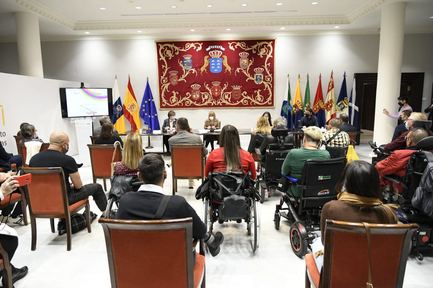 Canarias, 2 de diciembre de 2021.- El Parlamento de Canarias acogió este jueves la presentación de ‘InclusiÓN’, material didáctico impulsado por la Asociación Queremos Movernos con la colaboración del Colegio Echeyde y del Equipo Específico de Atención Educativa a Personas con Discapacidad Visual.