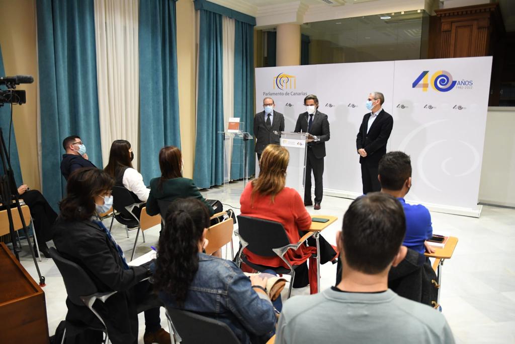 Canarias, 29 de marzo de 2022.- El Parlamento de Canarias acogió este martes la presentación de ‘Ciencia Política en Canarias’, un libro dirigido por Ángel Llanos Castro y José Adrián García Rojas que contiene un conjunto de trabajos sobre la Ciencia Política y de la Administración en el archipiélago. Su contenido se ha seleccionado mediante un equilibrio entre, por un lado, la perspectiva académica y de los sectores públicos y privados y, por otro, el valor de la Ciencia Política y de la Administración en diferentes sectores de investigación.