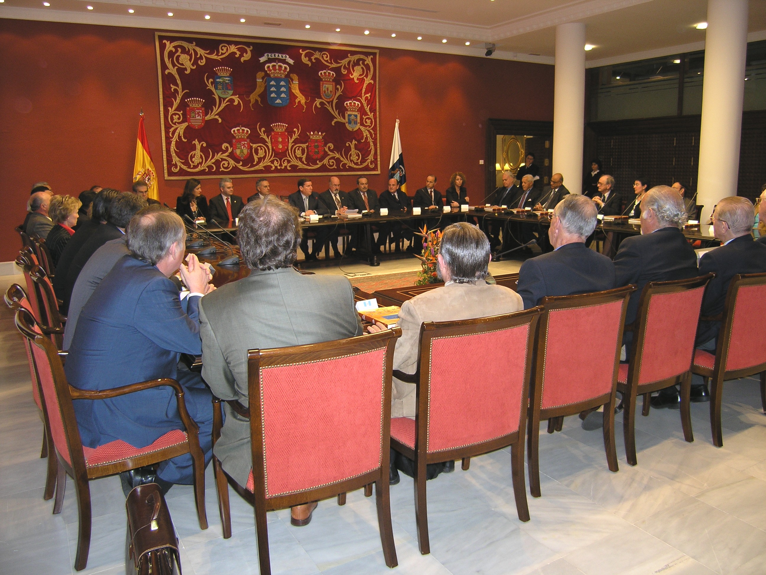 Los más de treinta diplomáticos desplazados mantuvieron una reunión con la Mesa y la Junta de Portavoces en la que se destacó la importancia del Tratado Constitucional Europeo para Canarias, haciendo especial hincapié en la necesidad de contar con una política común en materia de inmigración que beneficie a nuestra región.