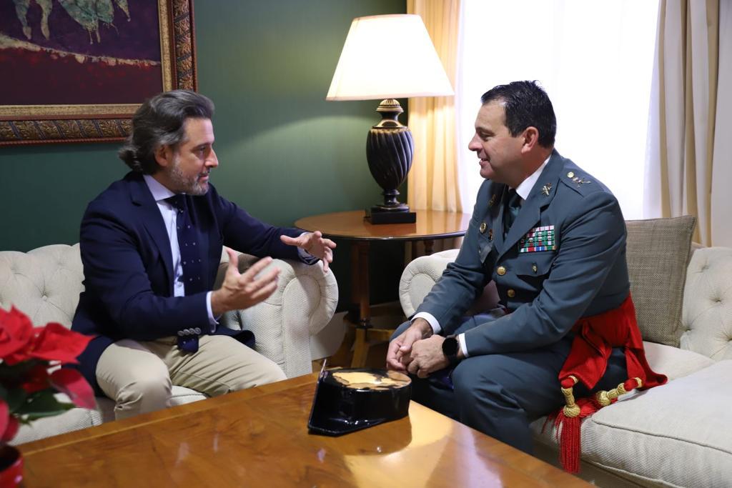 El presidente del Parlamento de Canarias, Gustavo Matos, recibe al nuevo general jefe de Zona de la Guardia Civil en Canarias
