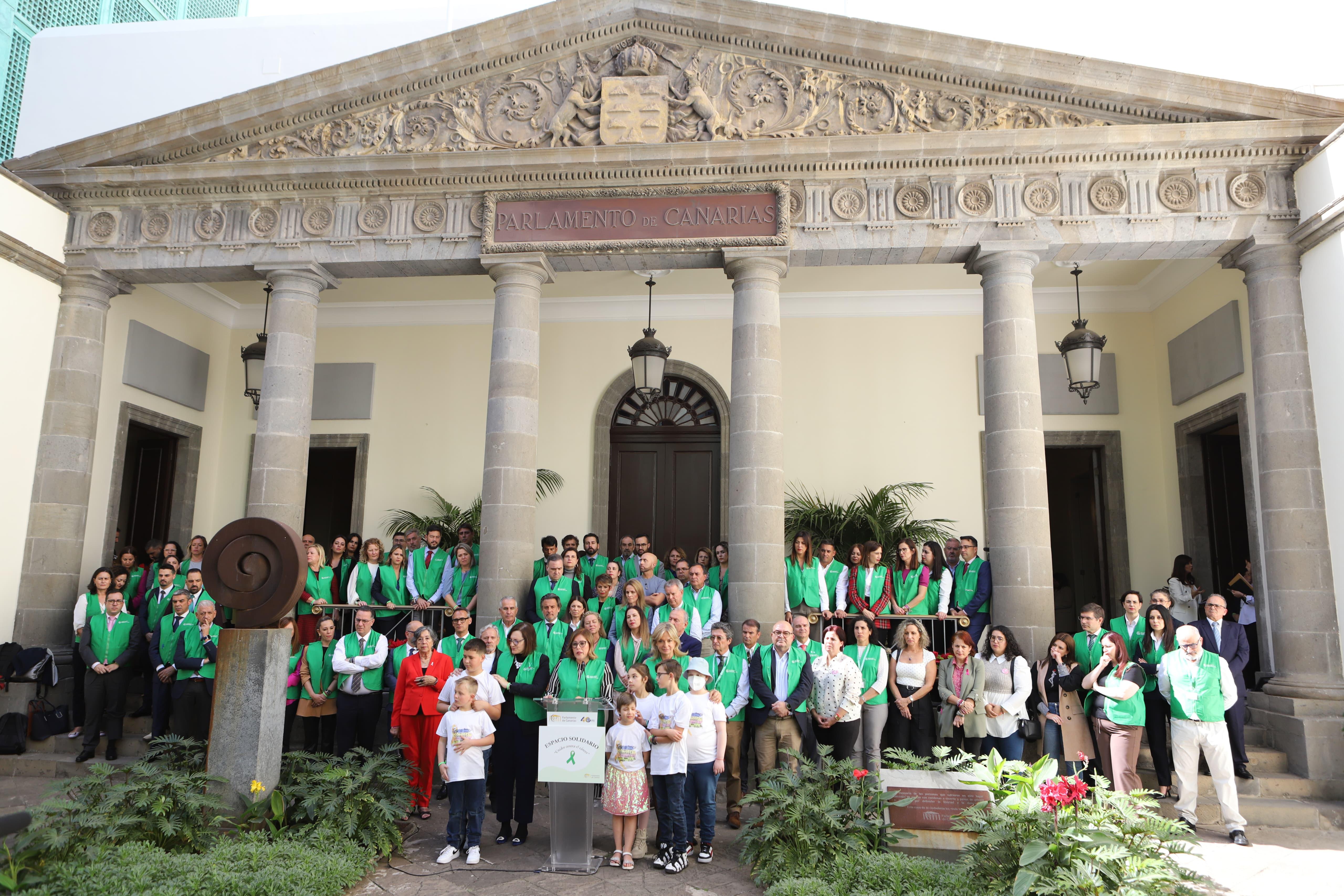 El Parlamento de Canarias mostró este martes la unidad de todos los grupos parlamentarios en la lucha contra el cáncer. La presidenta de la Cámara, Astrid Pérez, dio lectura en el Patio de Honor a la declaración institucional en la que los diputados y las diputadas de todos los partidos se comprometieron a “dar voz a quienes enfrentan el desafío del cáncer” y a "trabajar en esta Legislatura para ofrecer una mejor respuesta a sus necesidades y defender todos sus derechos”.