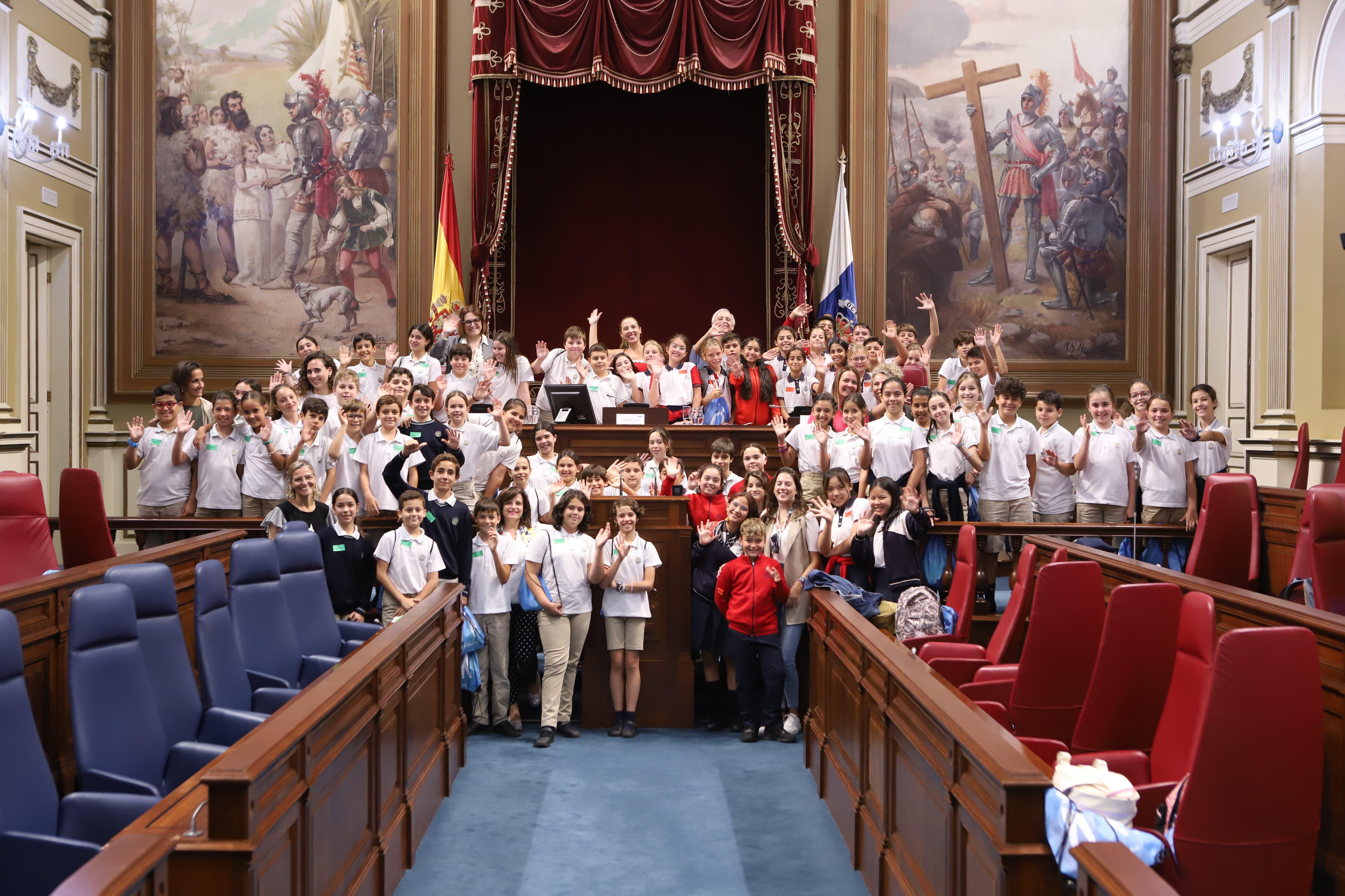 Aldeas Infantiles SOS ha celebrado esta mañana en el Parlamento de Canarias un pleno infantil en el que 70 escolares de primaria de los colegios Arenas Sur, de San Bartolomé de Tirajana, y Pureza de María, de Santa Cruz de Tenerife, se han convertido en diputados y diputadas por un día, defendiendo sus propuestas y votándolas en la Cámara. La secretaria segunda del Parlamento de Canarias, Patricia Hernández; la consejera de Bienestar Social, Igualdad, Juventud, Infancia y Familias del Gobierno de Canarias, María Candelaria Delgado Toledo, y el presidente de Aldeas Infantiles SOS, Pedro Puig Pérez, han asistido hoy a este pleno donde los niños y las niñas de estos centros de Gran Canaria y Tenerife han debatido sobre el valor de la solidaridad para reducir las desigualdades, así como la importancia de construir ciudades y comunidades sostenibles y amigables con las personas, los Objetivos de Desarrollo Sostenible 10 y 11 de Naciones Unidas.