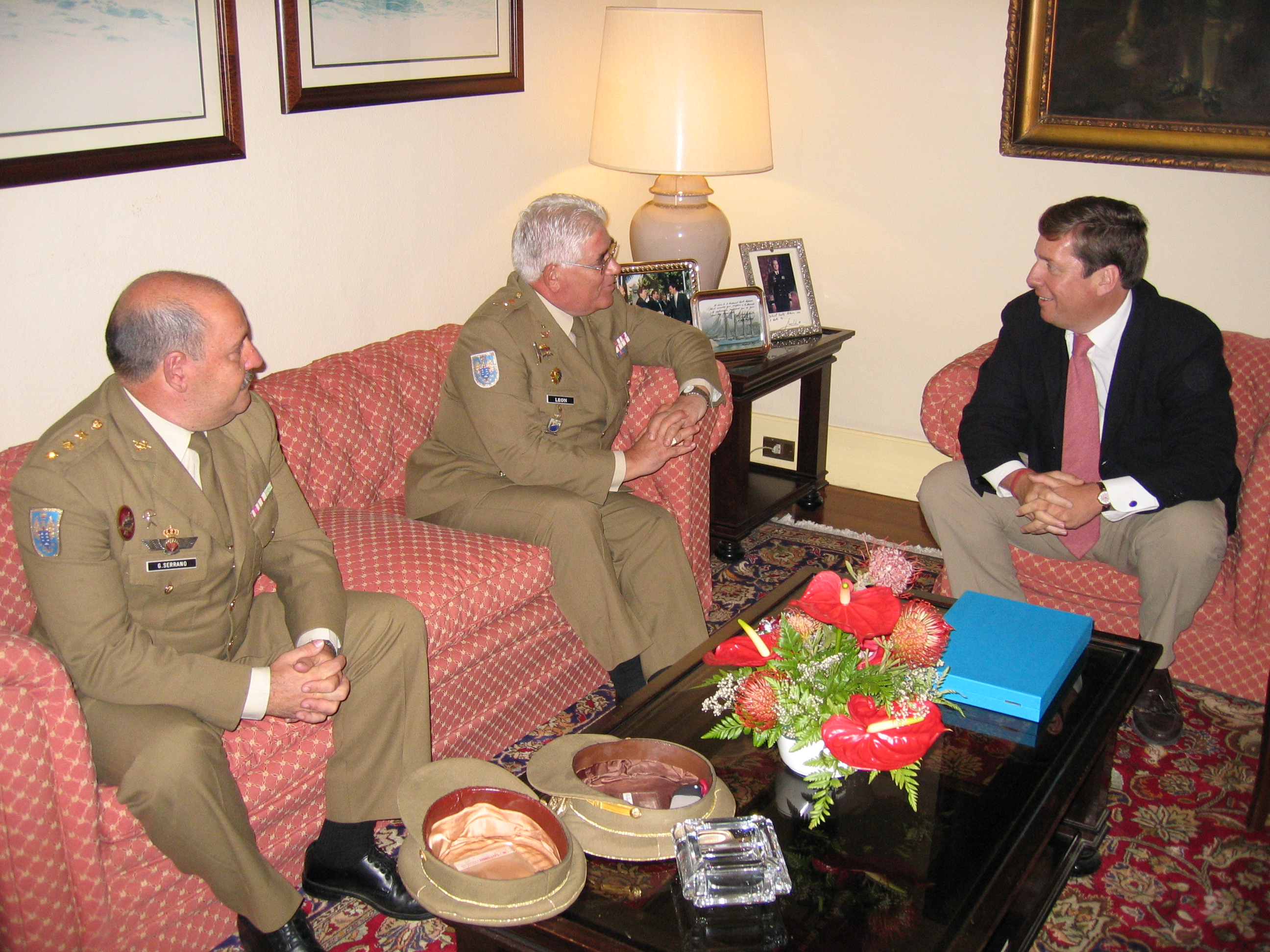 El presidente del Parlamento de Canarias, Gabriel Mato, despidió esta mañana en su despacho a Antonio León Villaverde, general jefe del Mando de Apoyo Logístico de Canarias y comandante militar de Santa Cruz de Tenerife desde 2001.