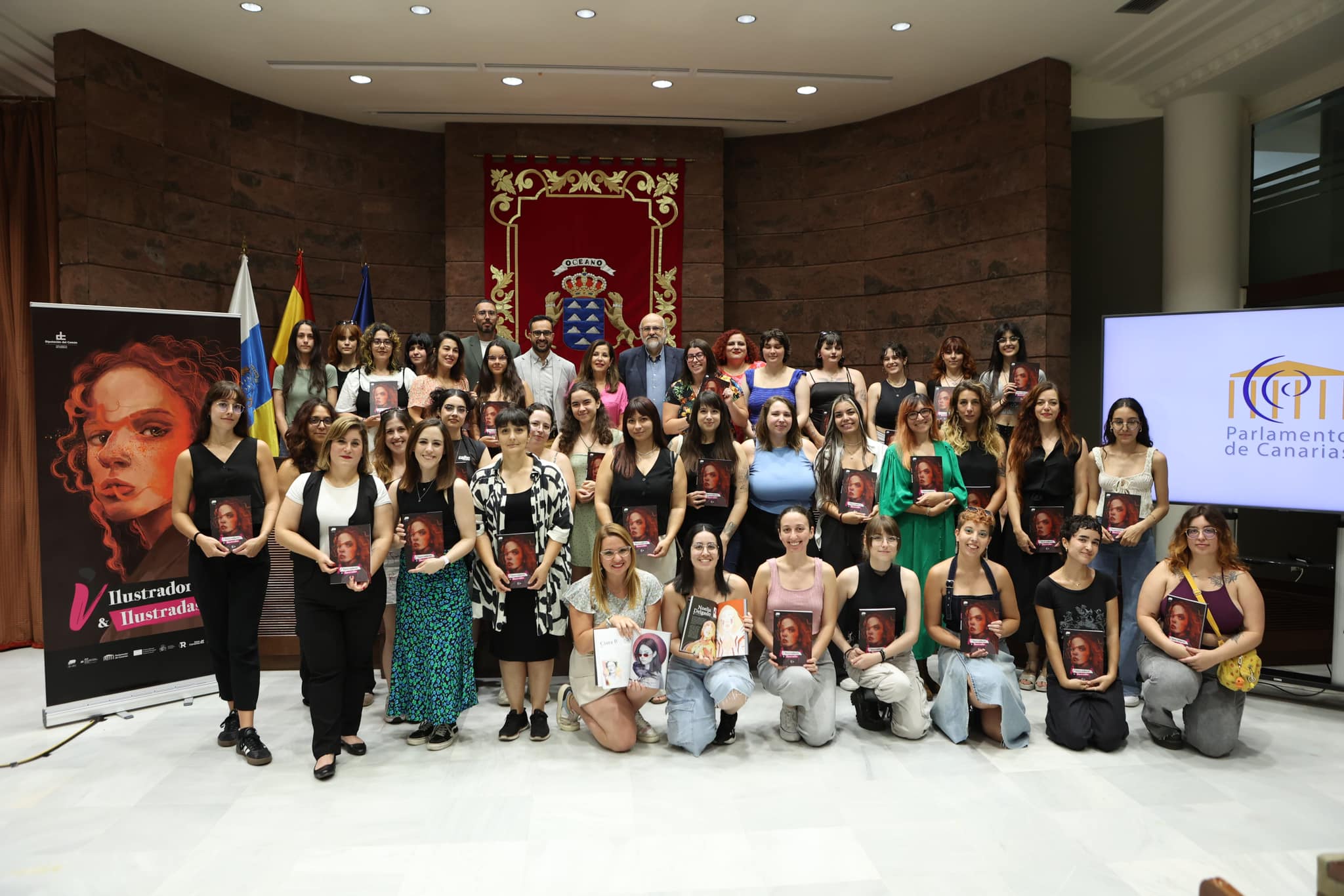 El Parlamento de Canarias acogió esta tarde la presentación del libro-catálogo de la exposición colectiva Ilustradoras e Ilustradas 4, una obra que recoge las biografías y algunas de las ilustraciones de las 105 artistas canarias o afincadas en las islas que protagonizan esta muestra itinerante. Más de medio centenar de participantes acudieron a la Sala Europa para recoger esta publicación de manos de la Diputada del Común, Dolores Padrón; el presidente de la Fundación Cine+Cómics, Francisco Pomares, y el diputado y portavoz del Grupo Mixto, Raúl Acosta. La presentación y entrega del catálogo es, según recordó Pomares, una tradición desde que el proyecto comenzó en el año 2021, que permite sobre todo dar a conocer a todas las artistas que participan en esta muestra colectiva. La exposición Ilustradoras & Ilustradas 4 estuvo abierta al público en el Parlamento de Canarias desde el 20 de mayo hasta el 8 de junio de 2024.