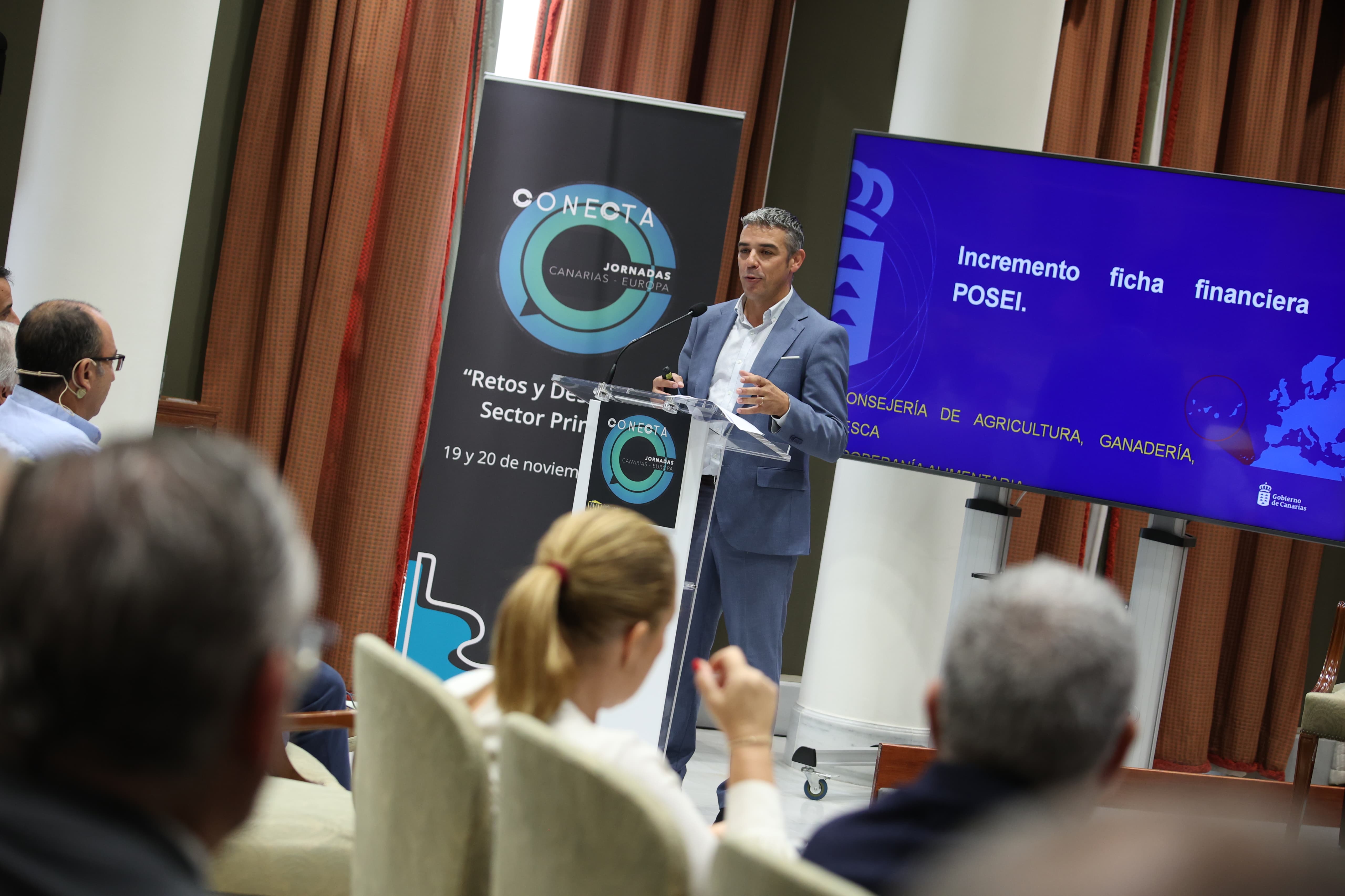 Tras la presidenta, la jornada ha continuado con la intervención del consejero de Agricultura, Ganadería, Pesca y Soberanía Alimentaria del Gobierno de Canarias, Narvay Quintero, quien ha señalado que “las ayudas europeas del Posei para compensar los sobrecostes de la agricultura y ganadería canaria se han mantenido congeladas en 268,42 millones de euros anuales desde 2007 hasta ahora, y deberían estar en 357,27 millones solo por el aumento del IPC. Si se incluye un aumento del 45% en el incremento de costes la revisión del Posei se situaría en 389,21 millones”. Quintero indicó también que el sector primario en Canarias ha soportado un incremento del 52% en los sobrecostes en los últimos 17 años.