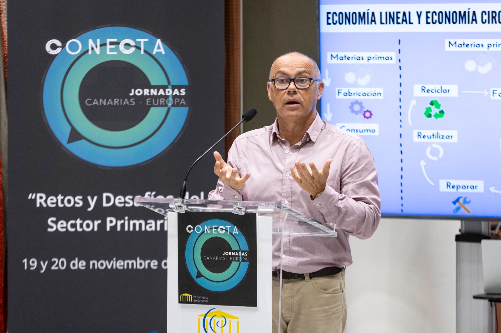Las Jornadas Conecta Canarias-Europa celebraron este miércoles su segunda cita en el Parlamento de Canarias. Durante esta segunda edición, dedicadas a conocer en profundidad los retos y desafíos del sector primario, ha acogido ponencias de expertos como Pedro Luis Rodríguez, economista y técnico de la consejería de Transición Ecológica y Energía del Gobierno de Canarias, que ha hablado sobre la circularidad en el sector primario. Tras él, intervino de forma online el Director General de Sanidad de la Producción Agroalimentaria y Bienestar Animal del Ministerio de Agricultura, Pesca y Alimentación de España, Valentín Almansa de Lara, con una charla sobre la inspección fronteriza y las cláusulas espejo. Durante la primera parte de la jornada también se trató la situación laboral en el sector primario y sus especificidades con el director técnico de Coagrisan, la Cooperativa Agrícola de San Nicolás. La segundo parte estuvo protagonizada por la figura de la mujer en el sector con los testimonios de la pescadora profesional y patrona de barco Carmen Soto Barreta, en una entrevista a cargo de la periodista Estíbaliz Pérez, que dio paso a un encuentro a dos bandas sobre el legado del campo, con Ana María Gil Vega y su hija, Belén Mendoza Gil. Ganaderas, queseras artesanales y cuarta generación de una de las últimas familias que practican la trashumancia en las islas. El broche final de las Jornadas Conecta Canarias-Europa dedicadas a los retos y desafíos del sector primario lo puso la mesa-coloquio con los representantes de los Grupos Parlamentarios, con la intervención de los diputados Juan Manuel García Casañas, Francisco Linares, Manuel Fumero, Luis Campos, Jesús Ramos y Raúl Acosta.