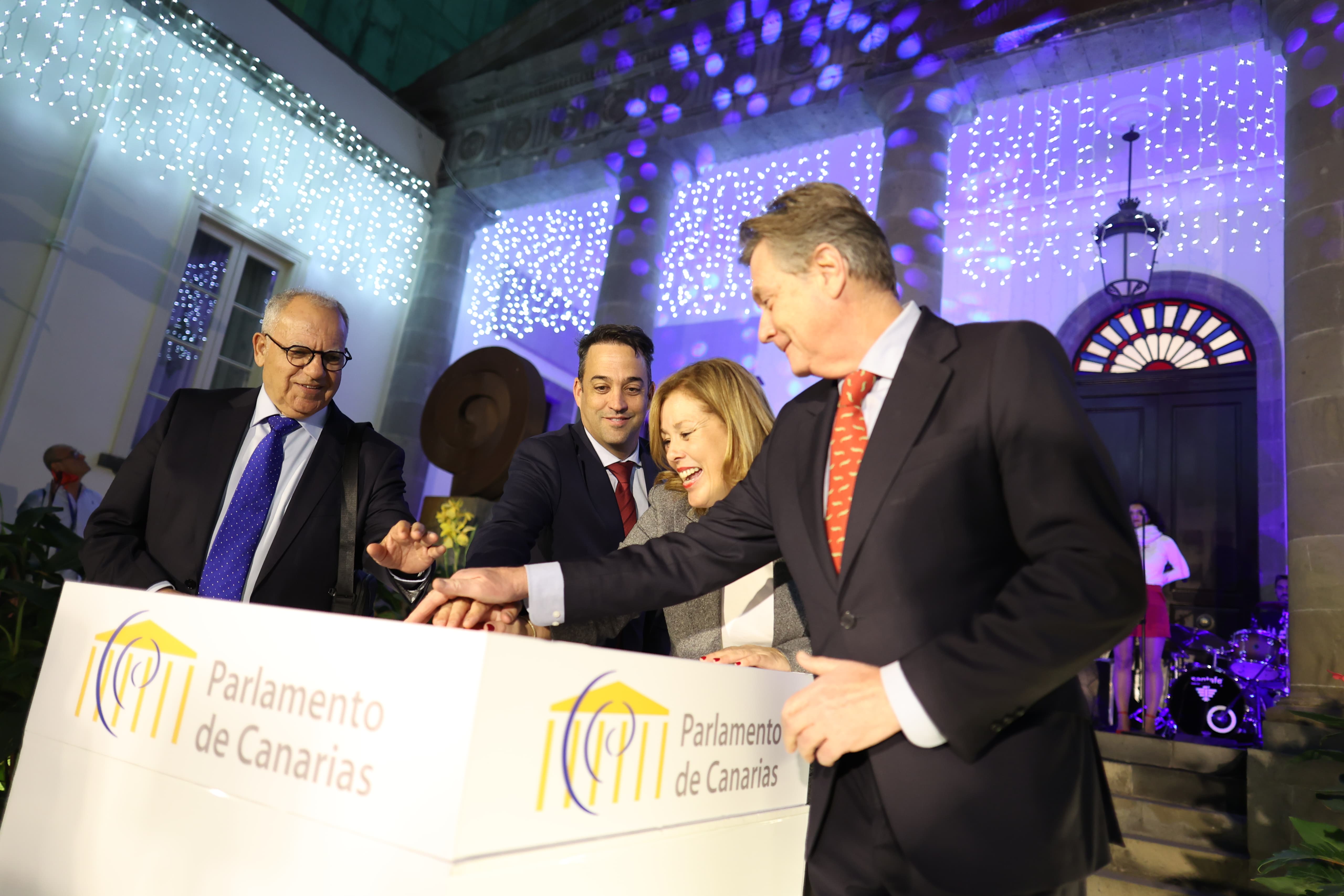 La presidenta del Parlamento de Canarias, Astrid Pérez, inauguró esta tarde el portal de Belén y el alumbrado navideño en un acto que contó con la presencia de miembros de la Mesa, diputados y diputadas de todos los grupos parlamentarios y personal de esta Cámara, y donde la presidenta abrió este periodo festivo deseando a todos los presentes “alegría, compañía y esperanza”. Astrid Pérez explicó que “los diferentes nacimientos del Parlamento siempre son especiales por sus escenas, paisajes y figuras que siempre reflejan a nuestra tierra y a su gente. Pero este año será más especial si cabe porque estará dedicado a las bajadas de la Virgen de Los Reyes y de las Nieves”. En este sentido, la presidenta aseguró que desde esta Cámara hemos querido rendir un homenaje a ambas celebraciones que coincidirán el próximo año 2025 en el tiempo, algo que ocurre cada 20 años. “Las bajadas son tradiciones populares y religiosas muy arraigadas en varias islas de nuestro archipiélago y desde el Parlamento hemos querido adelantarnos a esos días de alegría y fervor para los herreños y los palmeros, pero también para muchos canarios que acuden a estas islas”. El Belén de este año ha sido elaborado por el belenista grancanario Fernando Benítez y cuenta con aproximadamente 100 piezas estáticas y en movimiento, vestidos con trajes típicos de cada isla en la época de transición del siglo XIX y XX, con escenografías de ambas islas contemplando características arquitectónicas y paisajísticas y con una escena donde las mujeres aparecen confeccionando un manto de La Virgen y los sombreros de los hombres como es tradición. “Hemos querido unificar tradiciones y culturas en un belén elegante y muy caracterizado por ambas bajadas”, apuntó Astrid Pérez. Tras la inauguración del Belén, tuvo lugar el encendido de la iluminación navideña en el Patio de Honor del Parlamento que tiene como principal novedad que este año “por primera vez, dicha iluminación ambientará las calles Teobaldo Power y Castillo, dinamizando así el núcleo comercial de la ciudad e invitando a la ciudadanía a visitar el Nacimiento”. El belén podrá visitarse entre el 13 de diciembre y el 7 de enero de 2024, de 9:00 a 14:00 y de 16:00 a 21:00 horas. Los días 24 y 31 de diciembre el horario de apertura será de 9:00 a 16:00 y los días 25 de diciembre y 1 de enero, de 16:00 a 21:00 horas. Durante el acto del alumbrado se abrieron las puertas del Patio de Honor para invitar a la ciudadanía a participar de esta celebración que estuvo amenizada por la banda Christmas Rock, dirigida por Jaime Almeida, que interpretó las mejores versiones de temas navideños de todos los tiempos.