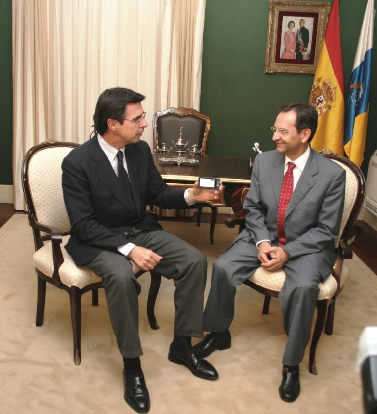 El presidente del Parlamento, Antonio Castro, recibió el Proyecto de Ley de Presupuestos Generales de la Comunidad Autónoma de Canarias para 2010, de manos del Consejero de Economía y Hacienda del Gobierno de Canarias, José Manuel Soria.